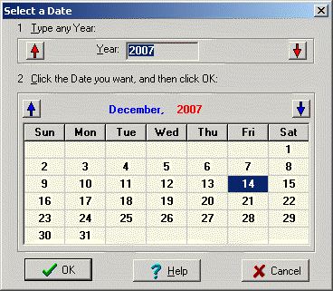 To select a date on the month you have selected, click on the date on the calendar’s date grid, then click the OK button to accept the date or click the date and press the ENTER key to accept it.