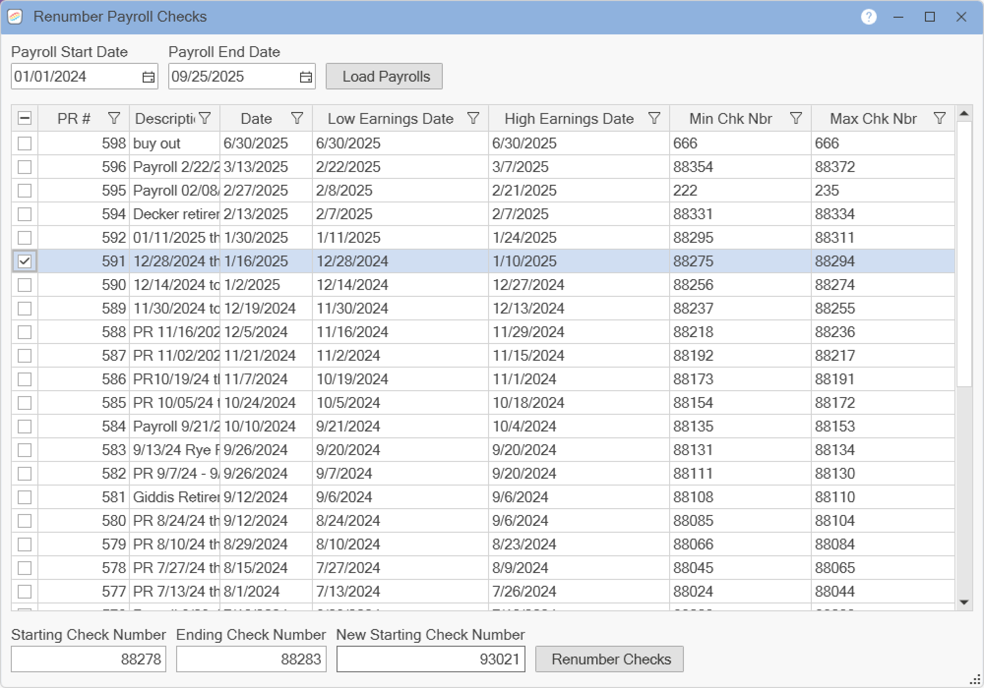 RENUMBER PAYROLL CHECKS